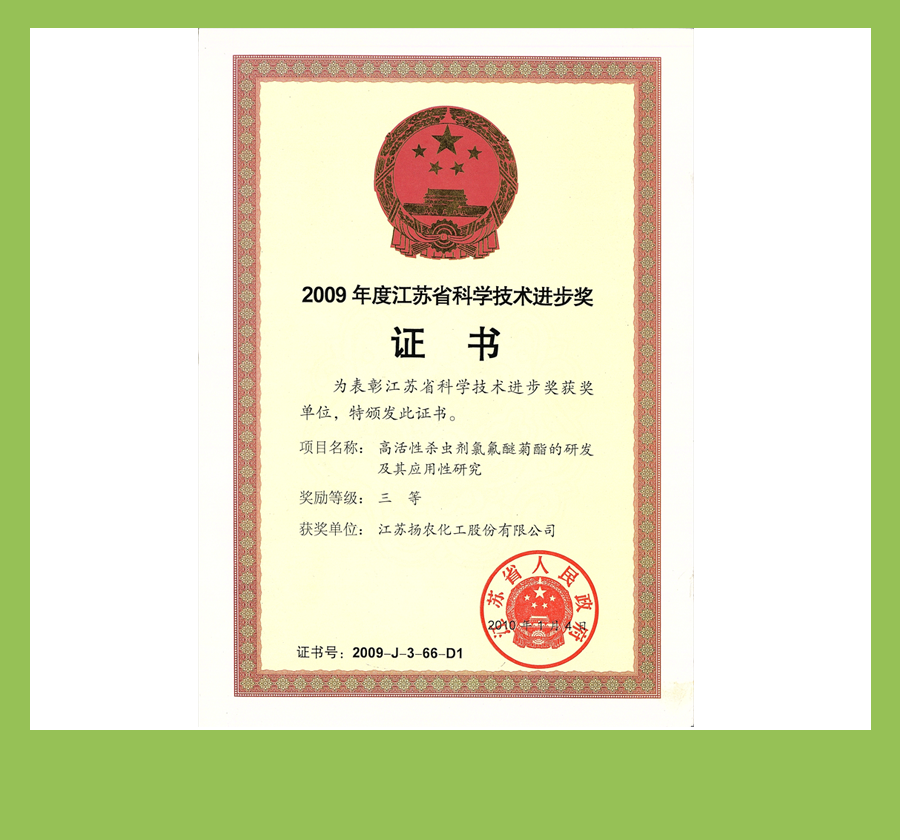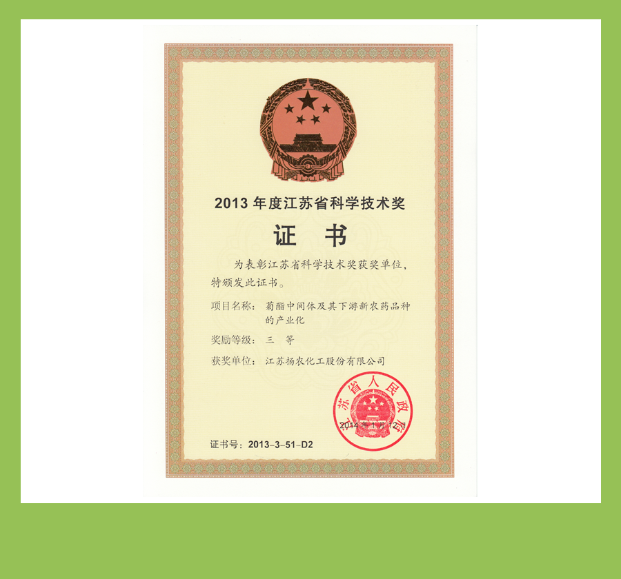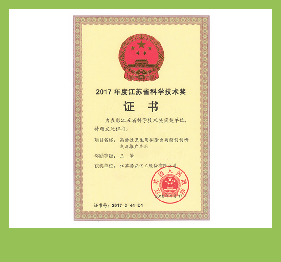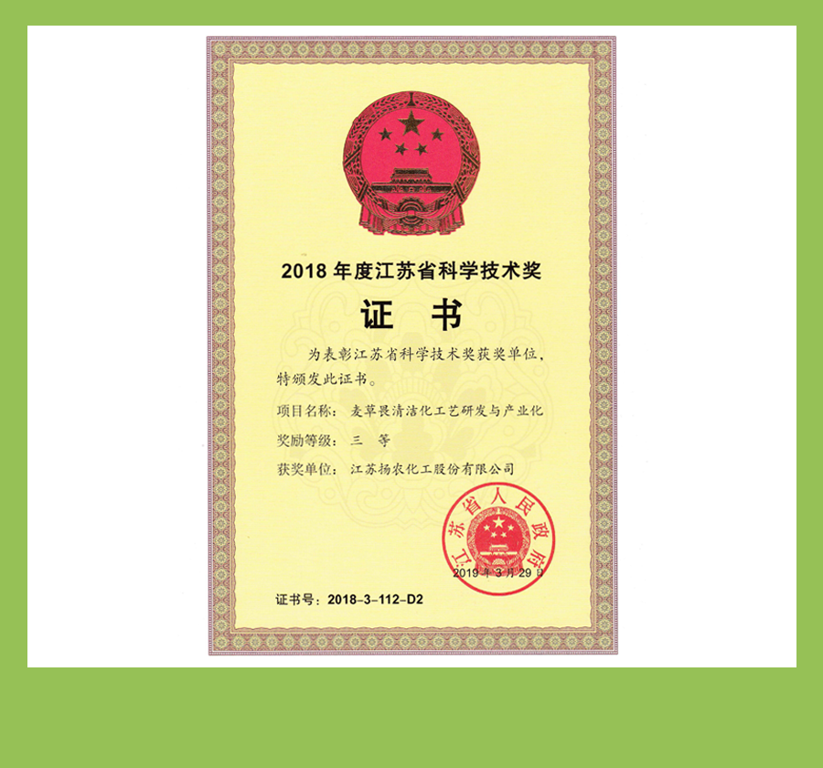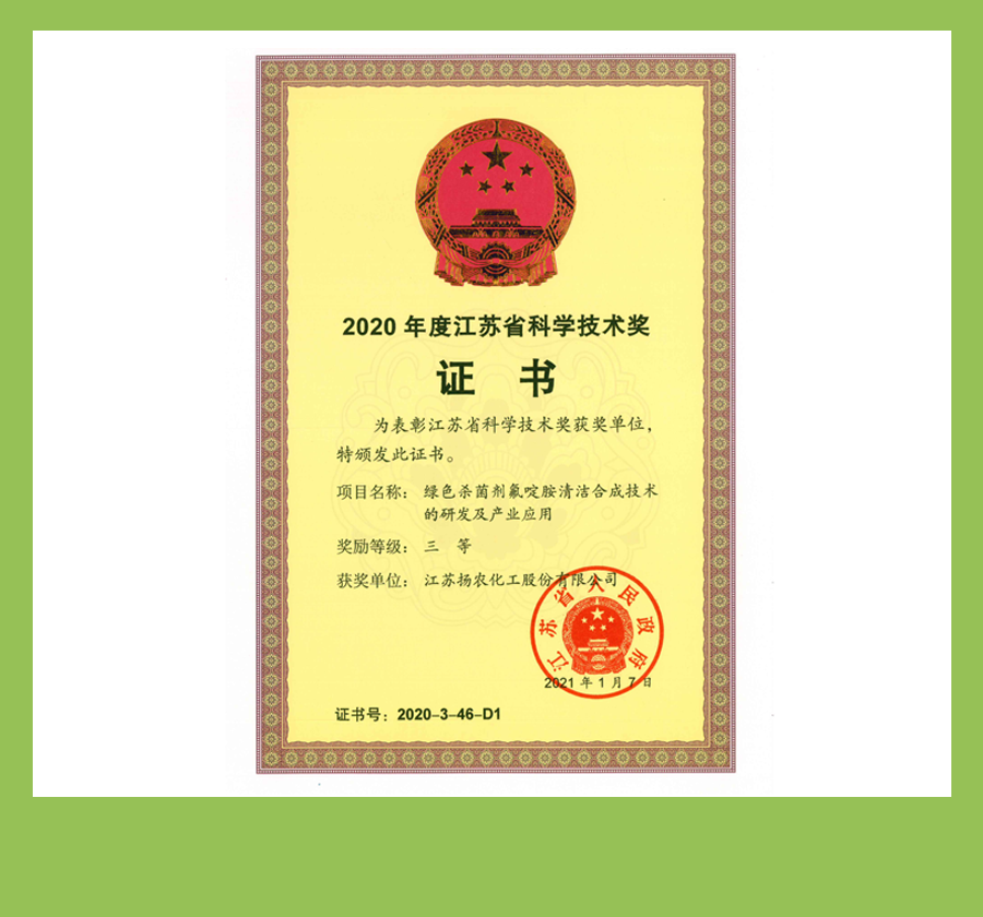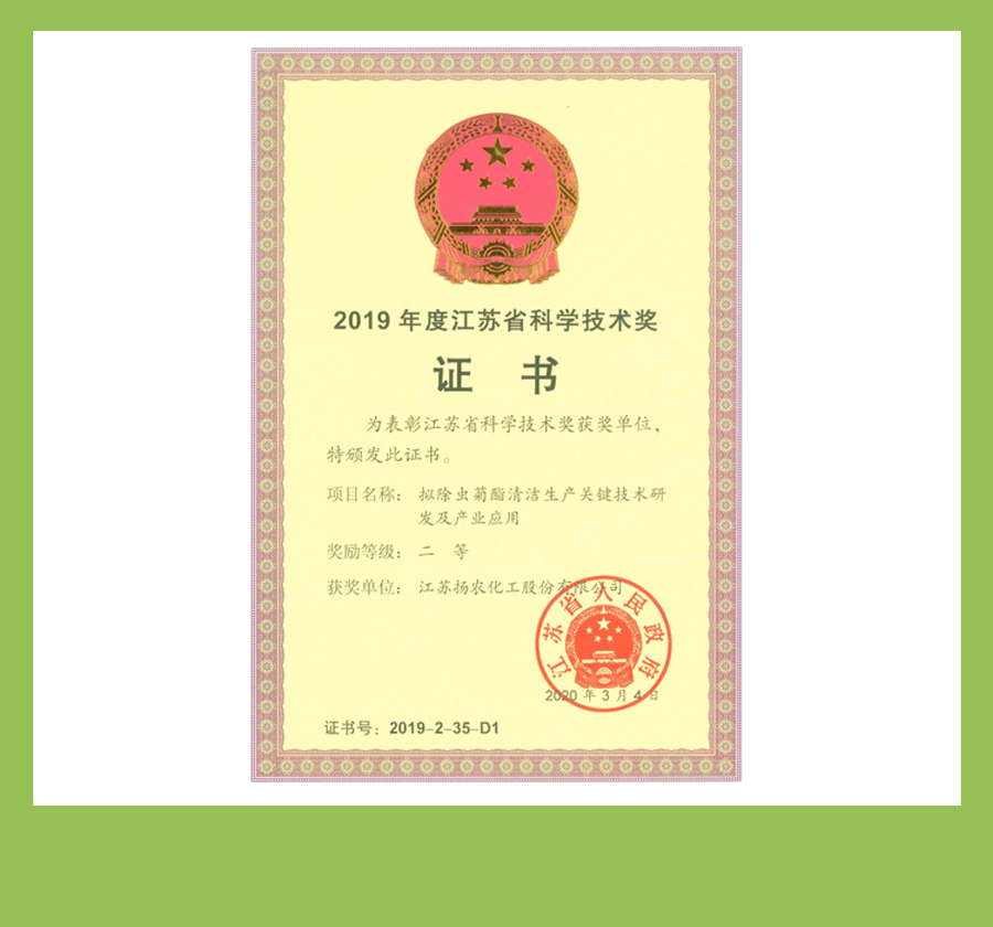公司围绕中国中化“科学至上”理念,聚焦新扬农“仿创结合,原药与制剂一体化”战略,“用创新改变未来,用化学美化生活”,以科技和创新开拓中国农业现代化和可持续发展道路,以中国创新实践服务全球农化市场。“十二五”至今,公司累计承担国家科技支撑计划、国家重点研发计划、工信部产业转型升级等国家级项目14项,公司产品和核心技术研发与产业应用等各类项目获取中国工业大奖、中国专利优秀奖、江苏省科技进步奖、中国石油和化学工业联合会科技进步奖等省级以上科技奖励30余项。