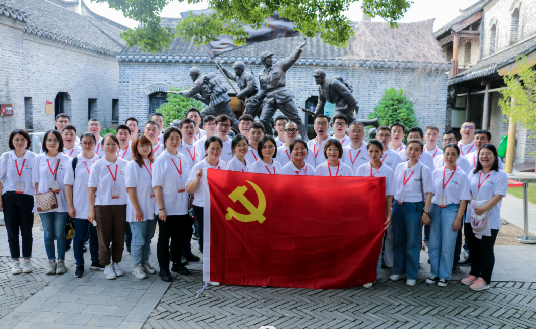 “我志愿加入中国共产党,拥护党的纲领,遵守党的章程……”在淮海战役纪念馆,公司工会主席、党群工作部主任张庆平同志带领大家面向鲜艳的党旗,重温入党誓词,叩问入党初心。
