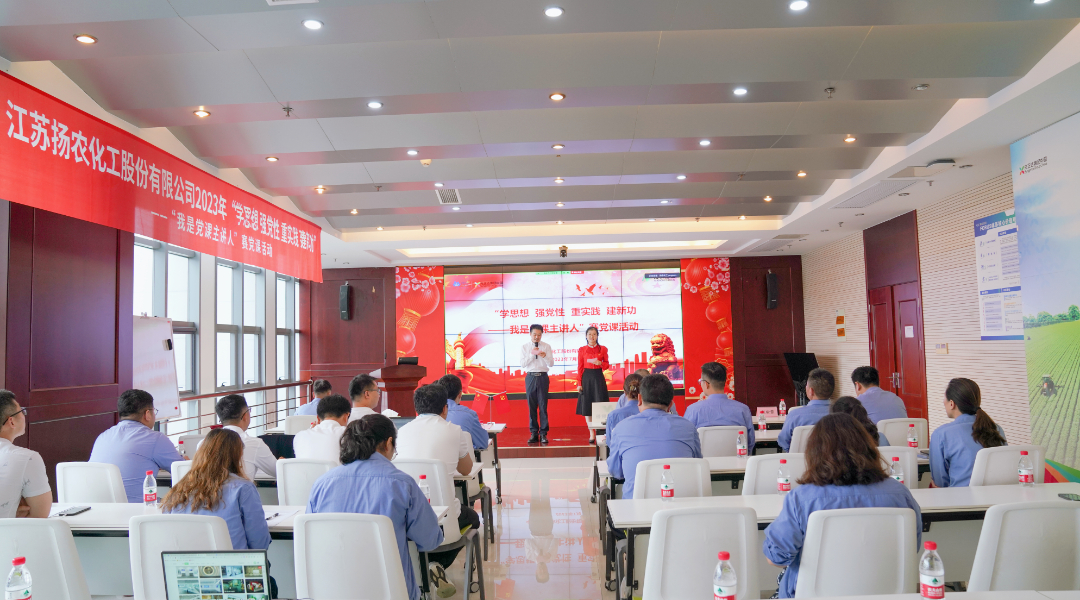 为深入学习贯彻习近平新时代中国特色社会主义思想和党的二十大精神,进一步强化党员干部思想武装、凝聚强大精神力量,教育引导党员干部努力在以学铸魂、以学增智、以学正风、以学促干方面取得实实在在的成效。7月4日,扬农股份党委组织开展“学思想、强党性、重实践、建新功——我是党课主讲人”赛党课活动,来自各党组织精心挑选的12名选手参加比赛。各公司专职或分管党务领导、党群职能部门负责人、专兼职党务工作者和党员代表共80人参加活动。公司党委副书记邹富清出席活动。