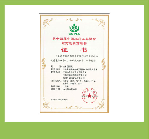 中国农药工业协会技术创新二等奖