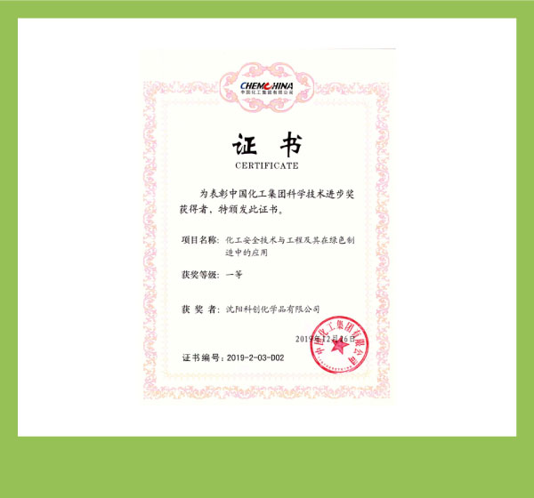 中国化工集团科学技术进步一等奖
