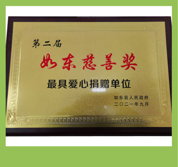 “如东慈善奖”最具爱心捐赠单位