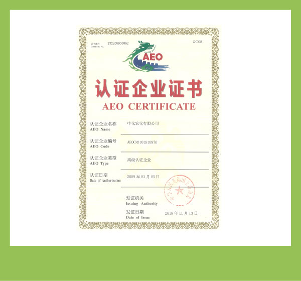 AEO认证企业证书