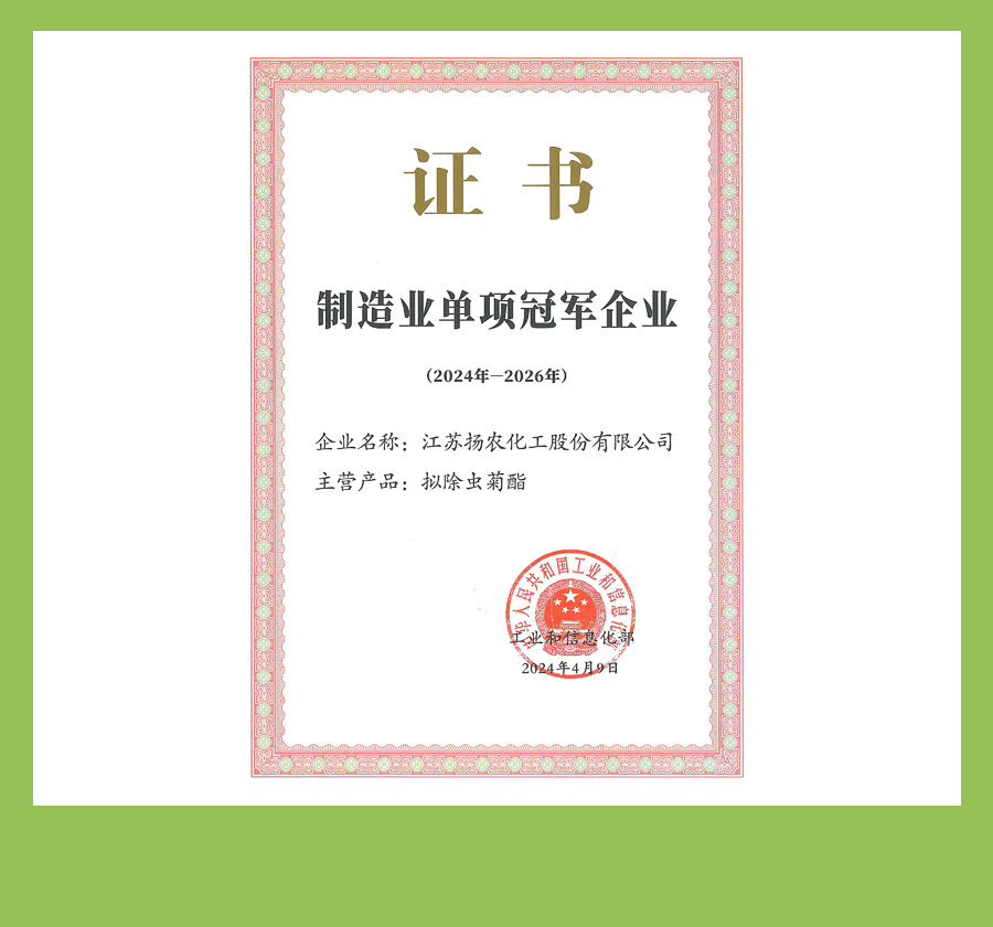 米兰官方网站-米兰(中国) (以下简称“扬农股份”)成立于1999年,2002年在上海证券交易所上市(股票名称:扬农化工,股票代码:600486)。是中国中化控股有限责任公司旗下成员企业,国内农化上市企业,全球拟除虫菊酯原药供应商。核心品种拟除虫菊酯是全国制造业单项冠军产品,2018年获中国工业大奖。