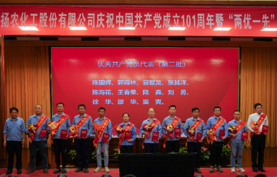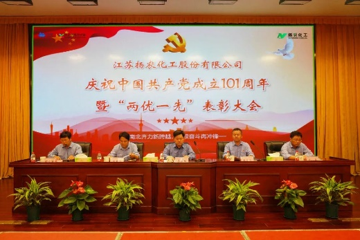 7月16日,扬农股份召开庆祝中国共产党成立101周年暨“两优一先”表彰大会,热烈庆祝中国共产党成立101周年,表彰公司各级党组织涌现出的“两优一先”先进集体和个人。先正达集团中国副总裁、扬农股份党委书记、总经理吴孝举讲述“弘扬伟大建党精神 激发干事创业激情 建设最具创新力的中国领先的现代农化企业”专题党课,会议由公司党委副书记邹富清主持。公司、子公司党政中层以上管理人员、支部委员、专兼职党务工作者、受表彰对象、党员及入党积极分子代表等近400人线上线下参加会议。