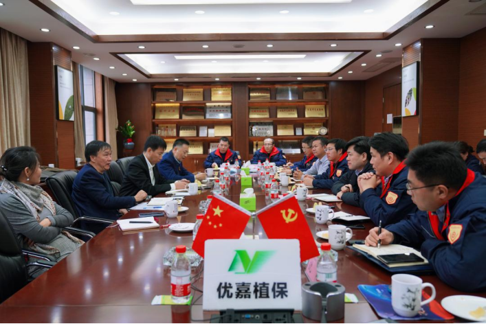 刘红生一行查看了优嘉生产调度指挥中心,听取了公司副总经理、优嘉植保总经理王明坤关于企业生产运营、产品情况、QHSE管理、信息化建设等有关情况的介绍,吴孝举介绍了扬农股份基本概况、生产经营情况和下阶段重点工作。
