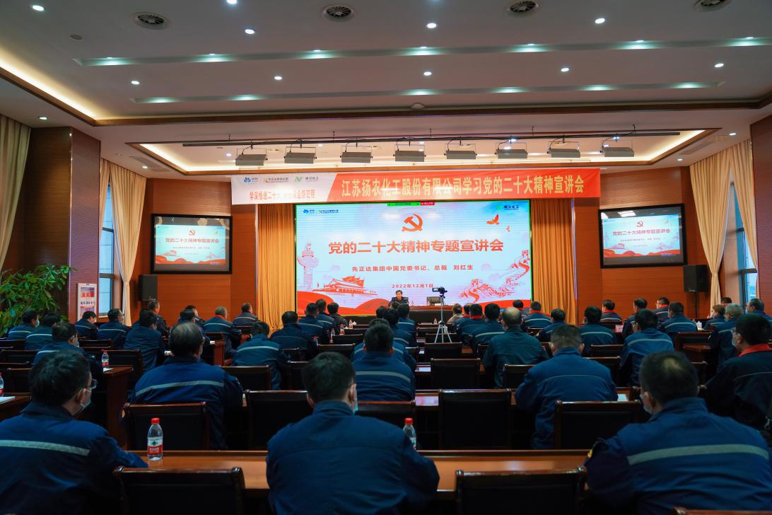 调研期间,刘红生宣讲了党的二十大精神,扬农股份及子公司党政领导班子成员、工段长及以上管理人员、党支部委员和部分党员、入党积极分子,180余人线上线下聆听宣讲。