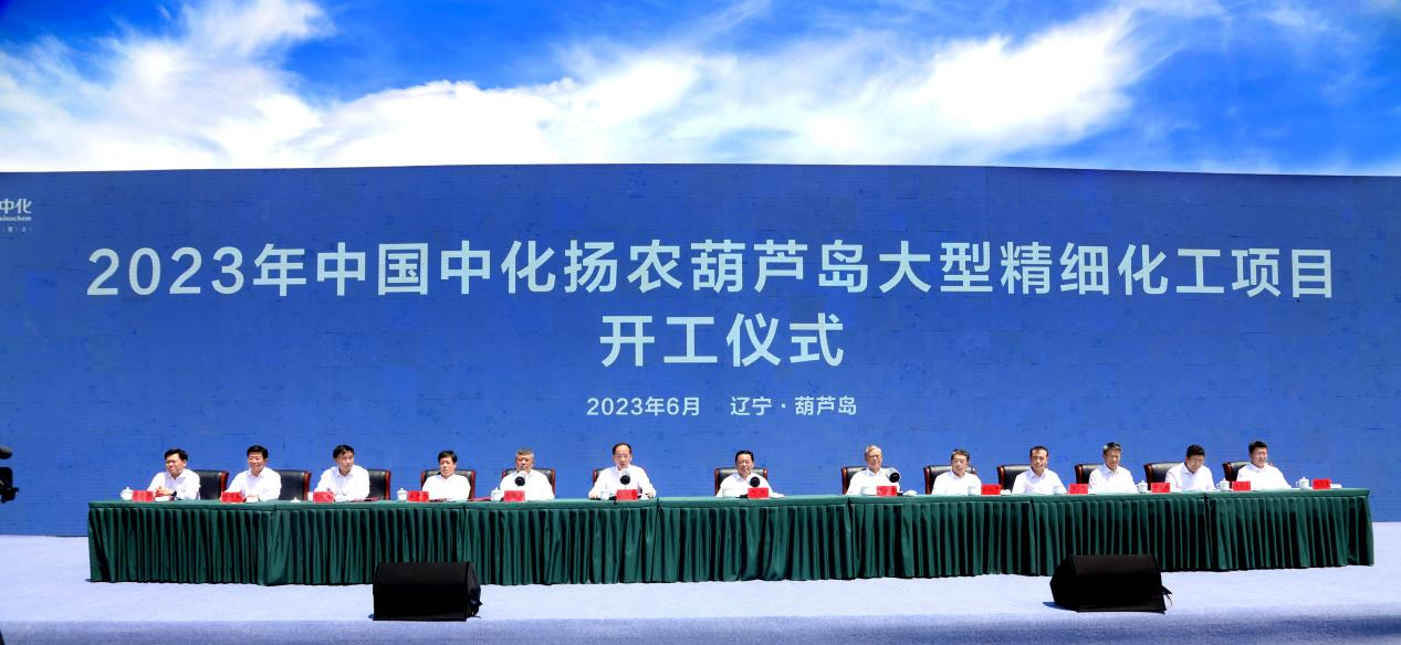 6月9日,中国中化扬农葫芦岛大型精细化工项目在葫芦岛经济开发区举行。辽宁省委书记、省人大常委会主任郝鹏出席仪式并宣布项目开工,中国中化党组书记、董事长李凡荣,辽宁省委副书记、省长李乐成,葫芦岛市委书记杨军生,先正达集团中国党委书记、总裁、扬农化工董事长刘红生出席并讲话。开工仪式由中国中化党组成员、副总经理阳世昊主持。葫芦岛市长何志勇,中国中化党组成员、副总经理、首席技术官张方,先正达集团中国副总裁、扬农化工党委书记、总经理吴孝举等领导出席仪式。