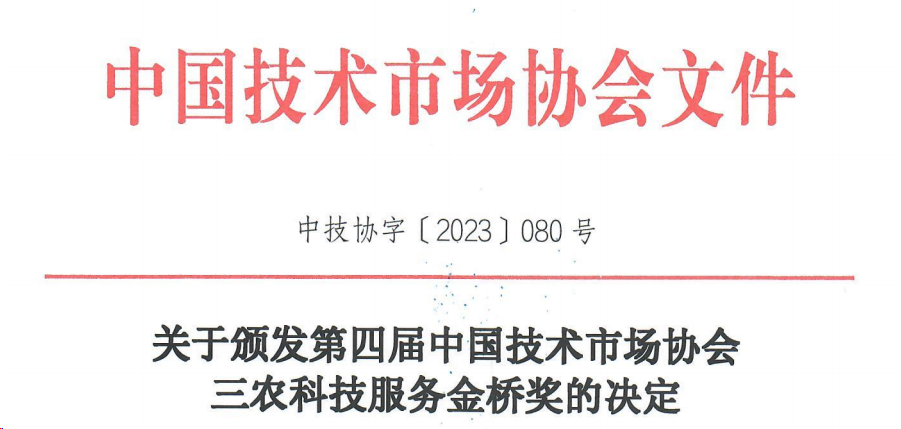 近日,第四届中国技术市场协会三农科技服务金桥奖获奖名单和《2023年第二批辽宁省雏鹰瞪羚独角兽企业名单》正式公布。我司旗下农研公司荣获三农科技服务奖集体奖一等奖,通过“瞪羚企业”认定。
