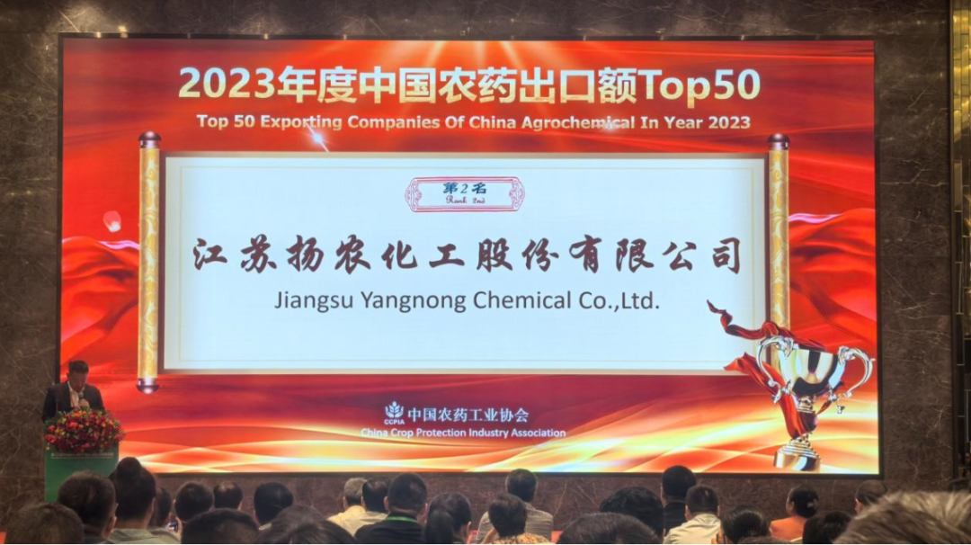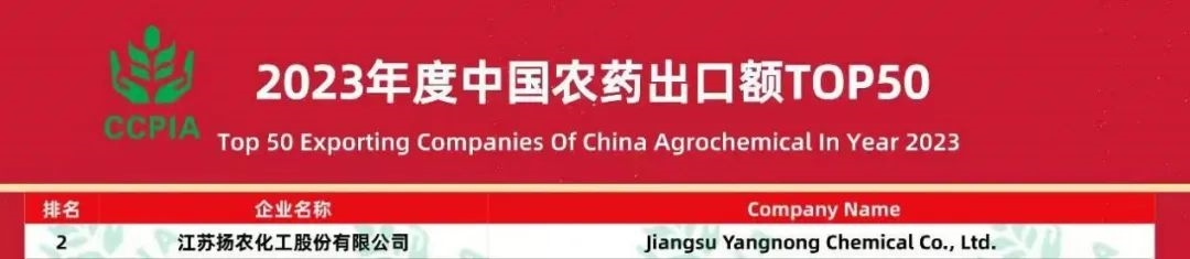 7月3-5日,第十一届中国植物保护产品国际贸易发展论坛在江苏南京召开。发展论坛上,中国农药工业协会发布了2023年度“中国农药出口额TOP50”榜单,扬农化工喜获“榜眼”。
