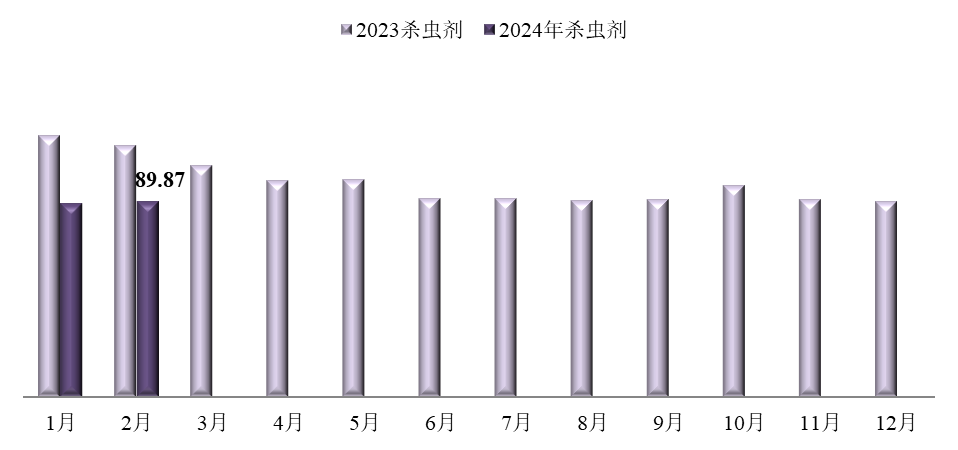 杀虫剂价格指数为89.87,环比上涨0.97%,同比下跌22.18%。监测在内的34种杀虫剂产品中,加权平均成交价格环比上涨的18种,环比持平的3种,环比下跌的11种;加权平均成交价格同比上涨的5种,同比下跌的28种。