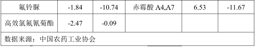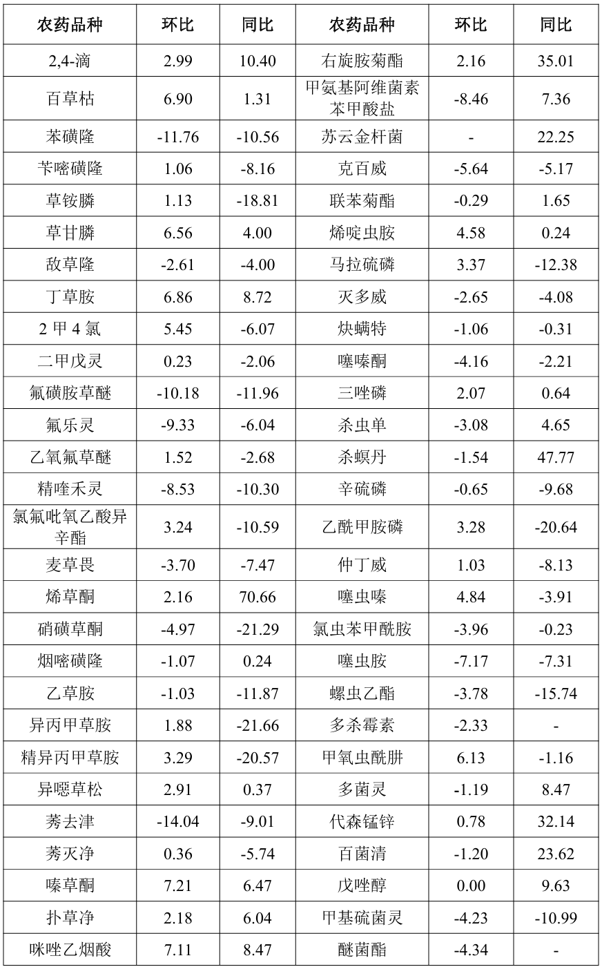 表1 2025年8月部分农药原药加权平均成交价格运行情况(%)